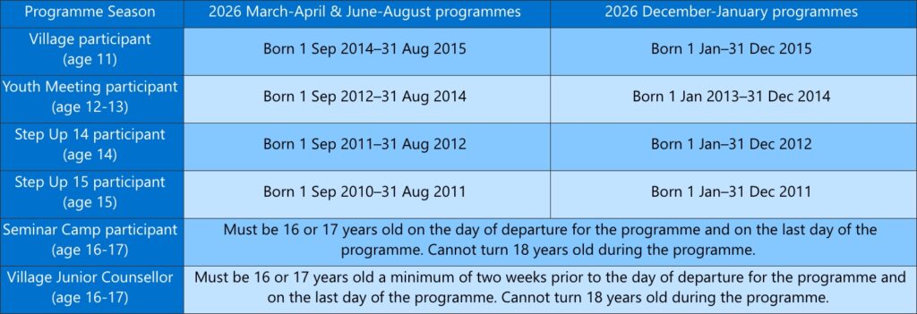 P.S.: Du möchtest schon wissen, wie alt man für welches Programm sein muß? Hier ist die Übersicht für 2026: